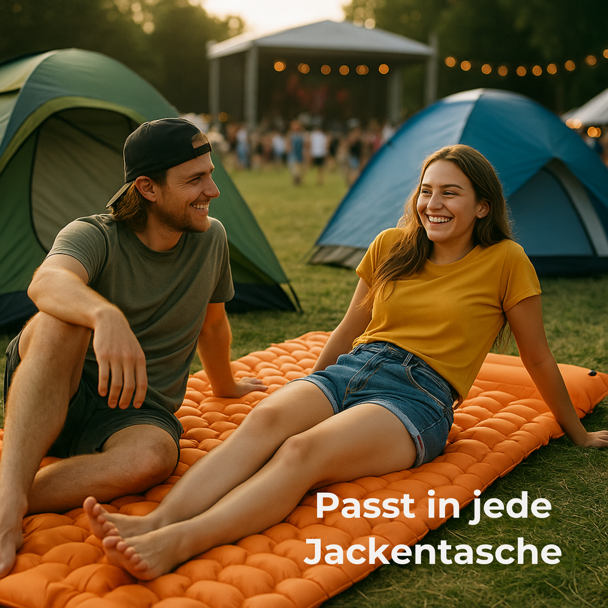 Auf unebenem Waldboden oder hartem Festivalgelände ist erholsamer Schlaf fast unmöglich. Diese Matte gleicht den Untergrund aus, bietet stabile Polsterung und sorgt dafür, dass du frisch und ausgeruht in den Tag startest.