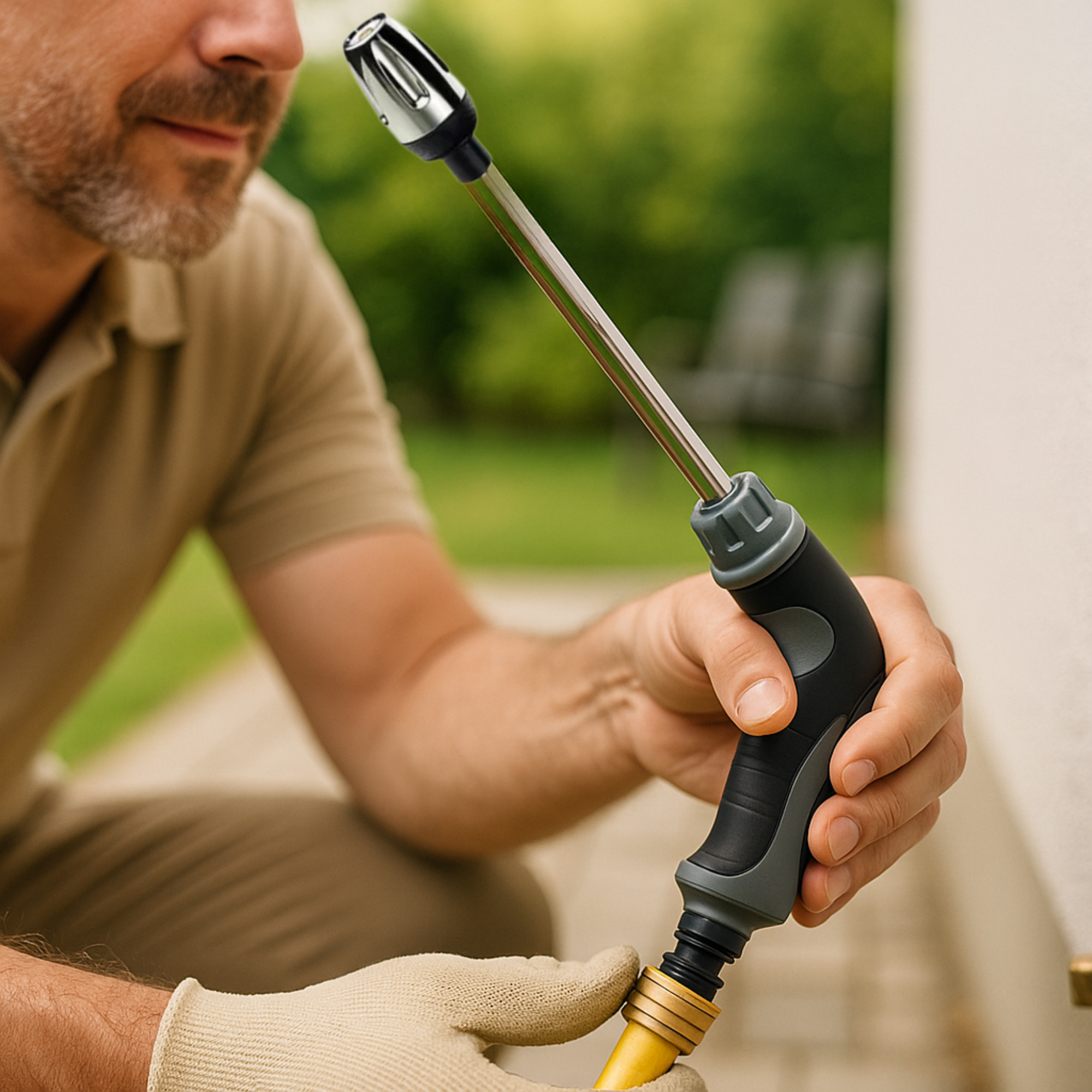 Verwandelt jeden Gartenschlauch in ein kraftvolles Reinigungsgerät – ganz ohne Strom oder Aufwand.