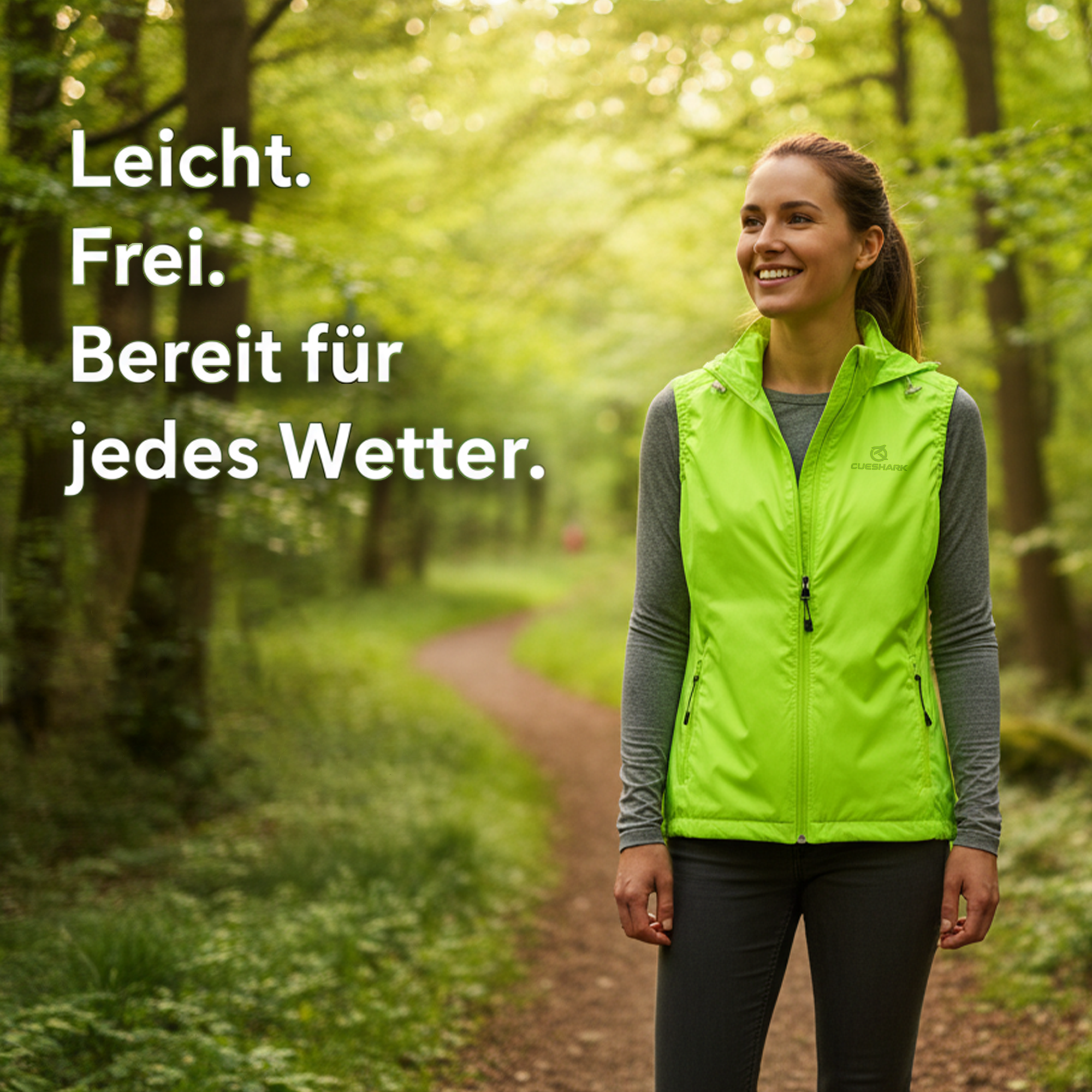 AquaShield kombiniert ultraleichtes Nylon mit robuster Wetterfestigkeit. Das atmungsaktive Mesh sorgt für Luftzirkulation, die verstellbare Kapuze schützt zuverlässig vor Wind und Regen, und die abnehmbaren Ärmel machen dich flexibel bei jedem Wetter.