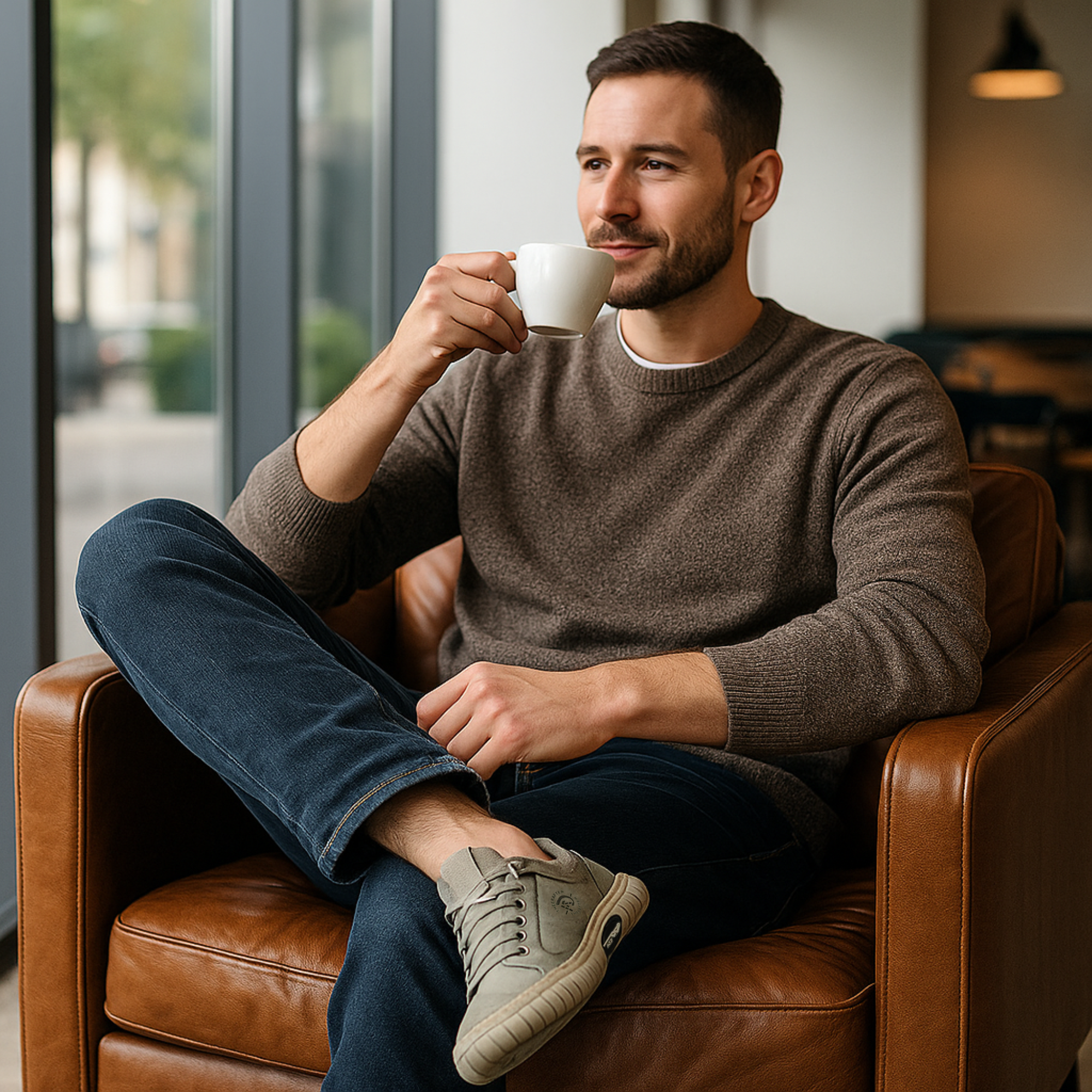 Viele Männer klagen über Druckstellen, Fußschmerzen oder müde Beine – besonders nach der Arbeit oder längeren Spaziergängen. Der Barfino entlastet deine Füße mit seiner ergonomischen Sohle und stärkt sie gleichzeitig. Du gehst wieder mit Leichtigkeit – spürbar schon ab dem ersten Tag.