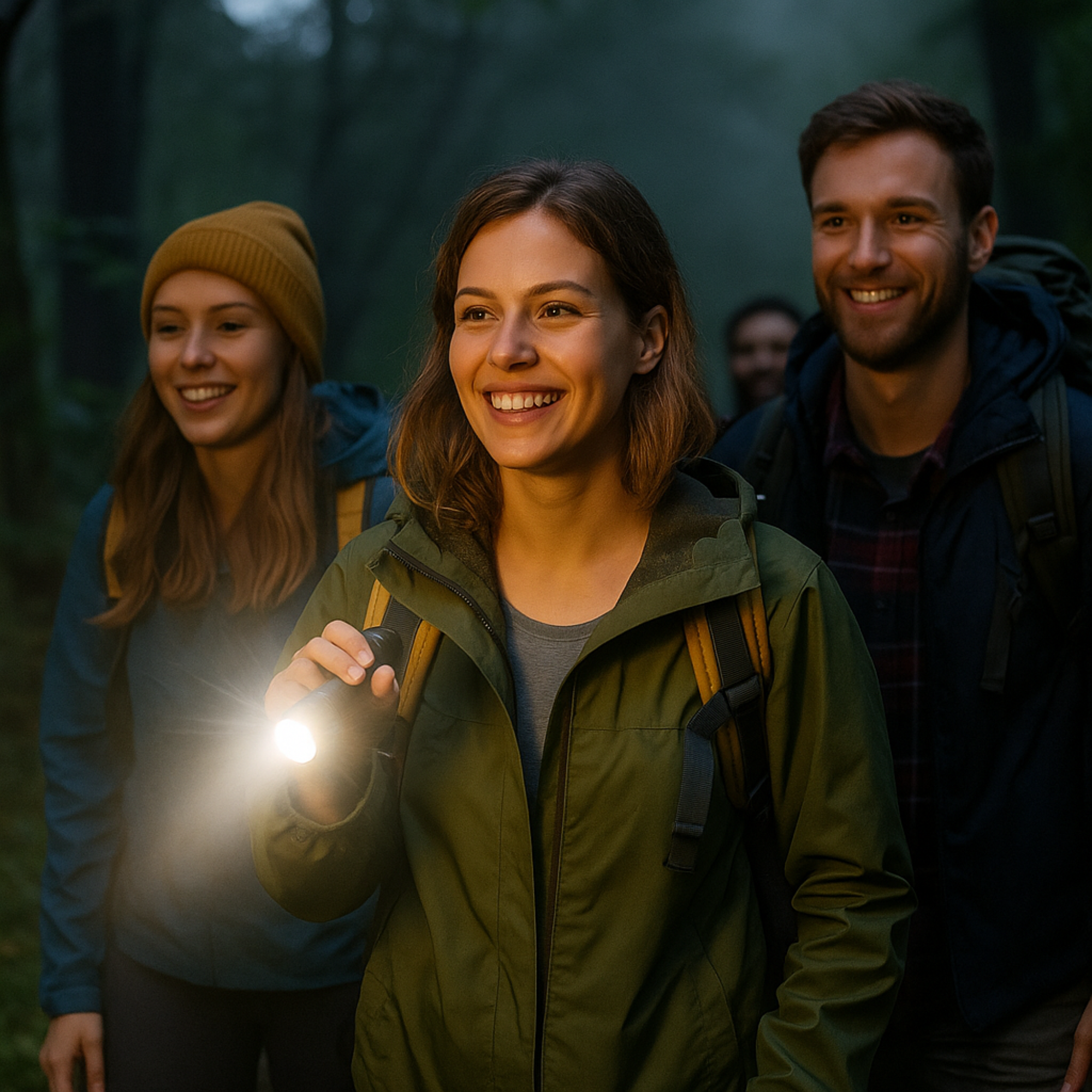 Dichter Wald, unübersichtliche Wege und plötzlicher Regen? Genau für solche Szenarien wurde LumenGuard gebaut. Ihre Leuchtkraft durchdringt Nebel und Waldschatten – du fühlst dich sicher und hast immer volle Sicht.