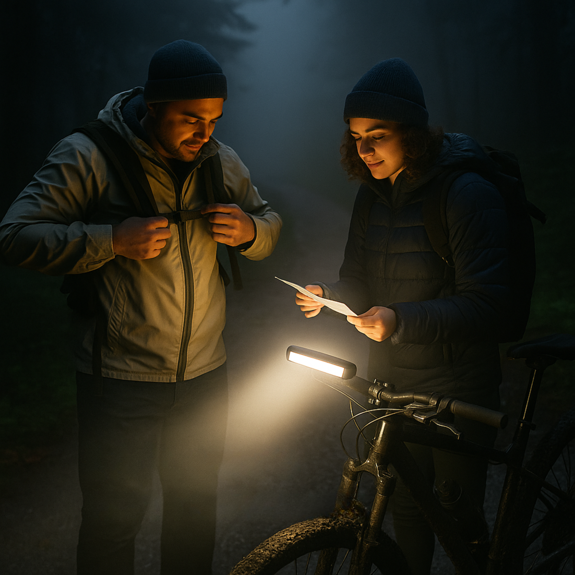Lange Touren oder kalte Nächte zehren am Handy-Akku – und plötzlich bist du ohne Navigation oder Notrufmöglichkeit. LumiRide hat eine integrierte Powerbank, mit der du dein Smartphone unterwegs bequem aufladen kannst. Praktisch, sicher – und im Ernstfall ein echter Lebensretter.