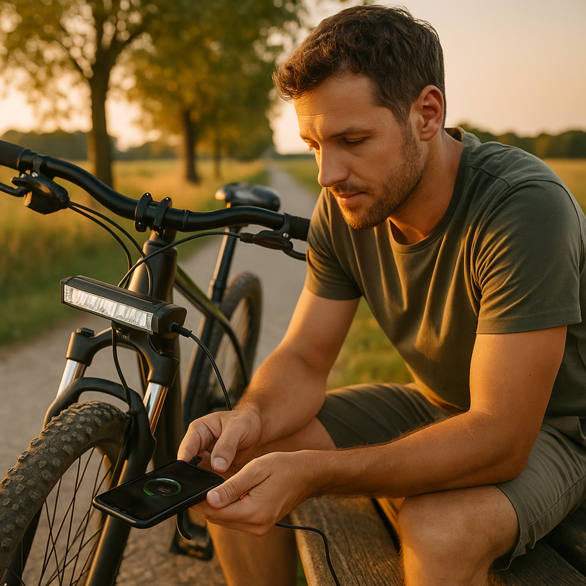 Nie wieder ein leerer Handy-Akku unterwegs – LumiRide lädt deine Geräte direkt am Lenker.