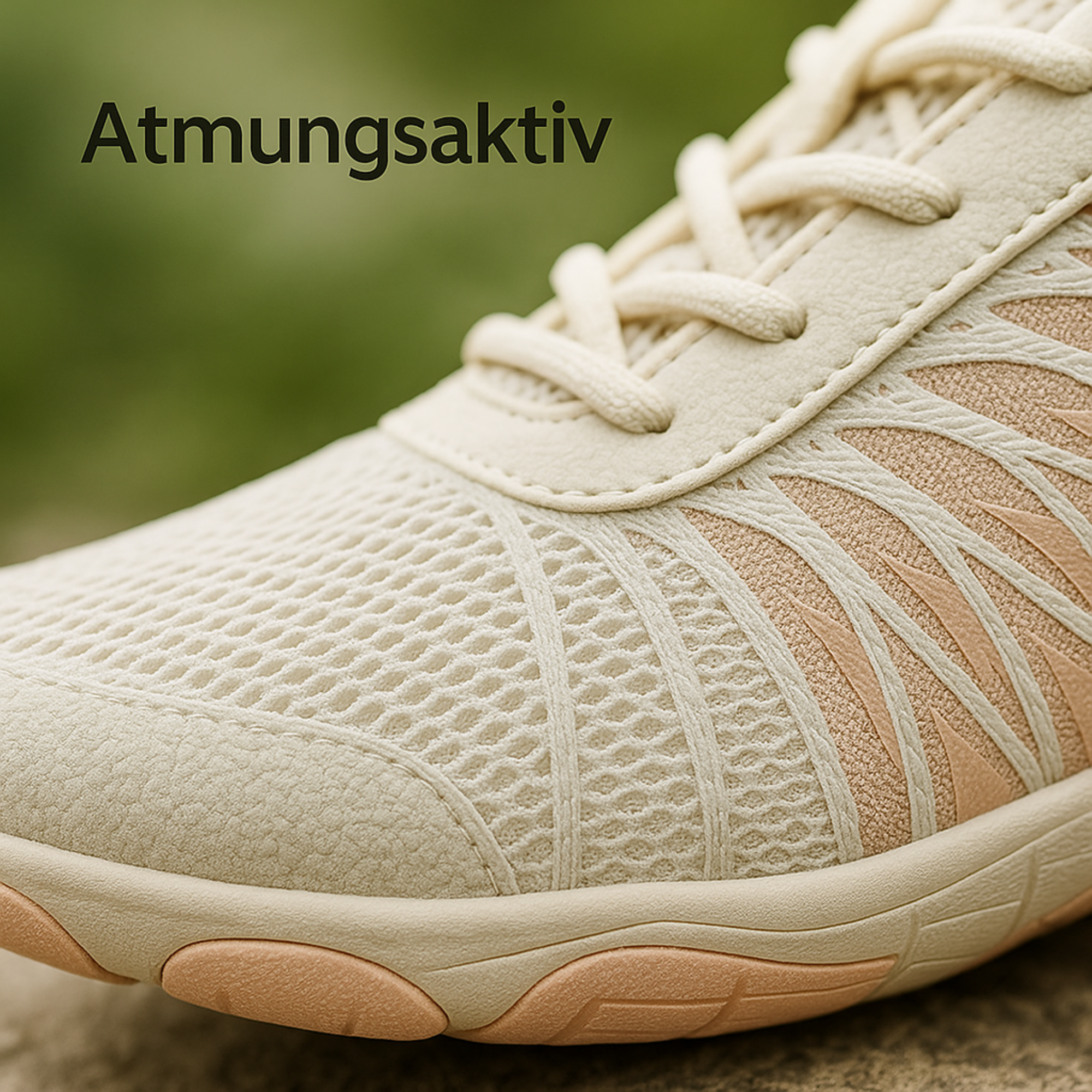 Die atmungsaktive Mesh-Oberfläche hält deine Füße kühl und trocken – selbst bei Hitze oder Bewegung. Die 4 mm dünne, flexible Sohle fördert eine natürliche Haltung und entlastet Gelenke und Rücken. Dazu kommt eine ergonomische Passform mit weichem Fersenpolster für ganztägigen Komfort, auch bei Plantarfasziitis oder Neuropathie.