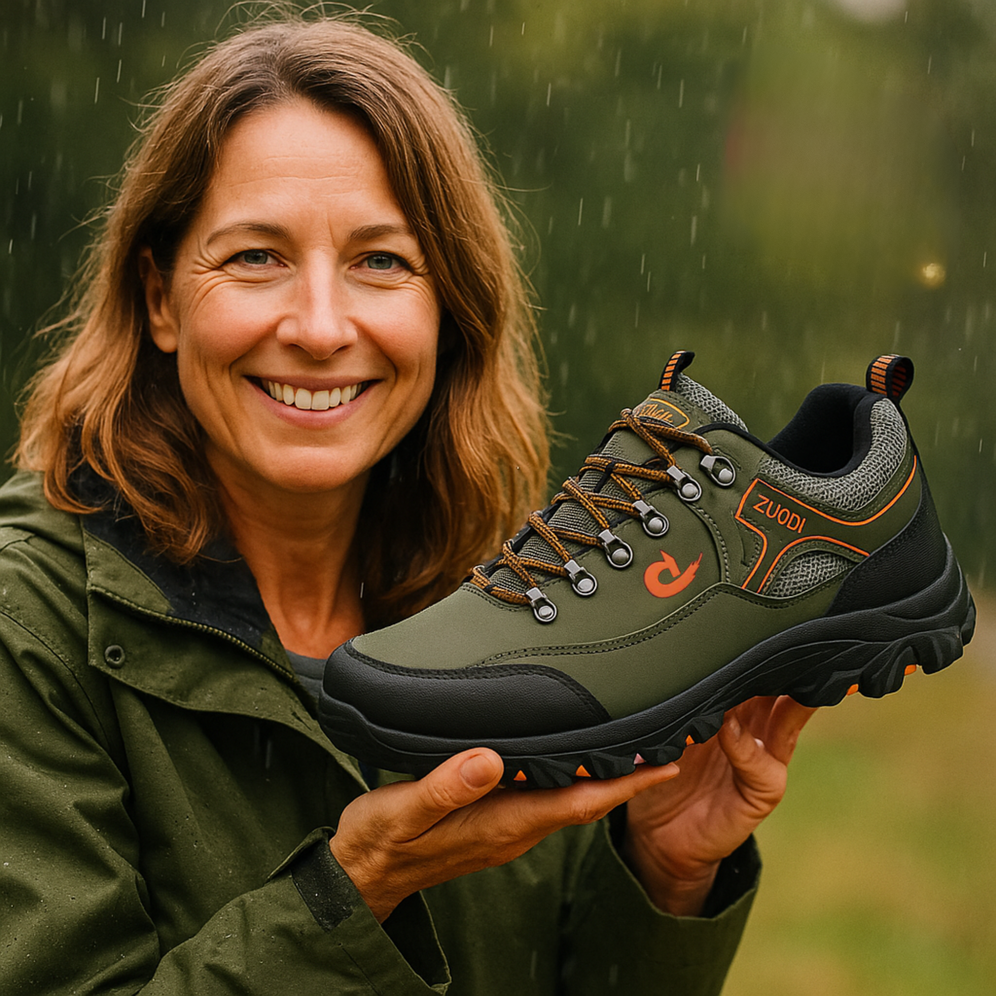 Er ist stark wasserabweisend und hält deine Füße auch bei Regen und feuchtem Boden trocken – perfekt für unbeständiges Wetter.