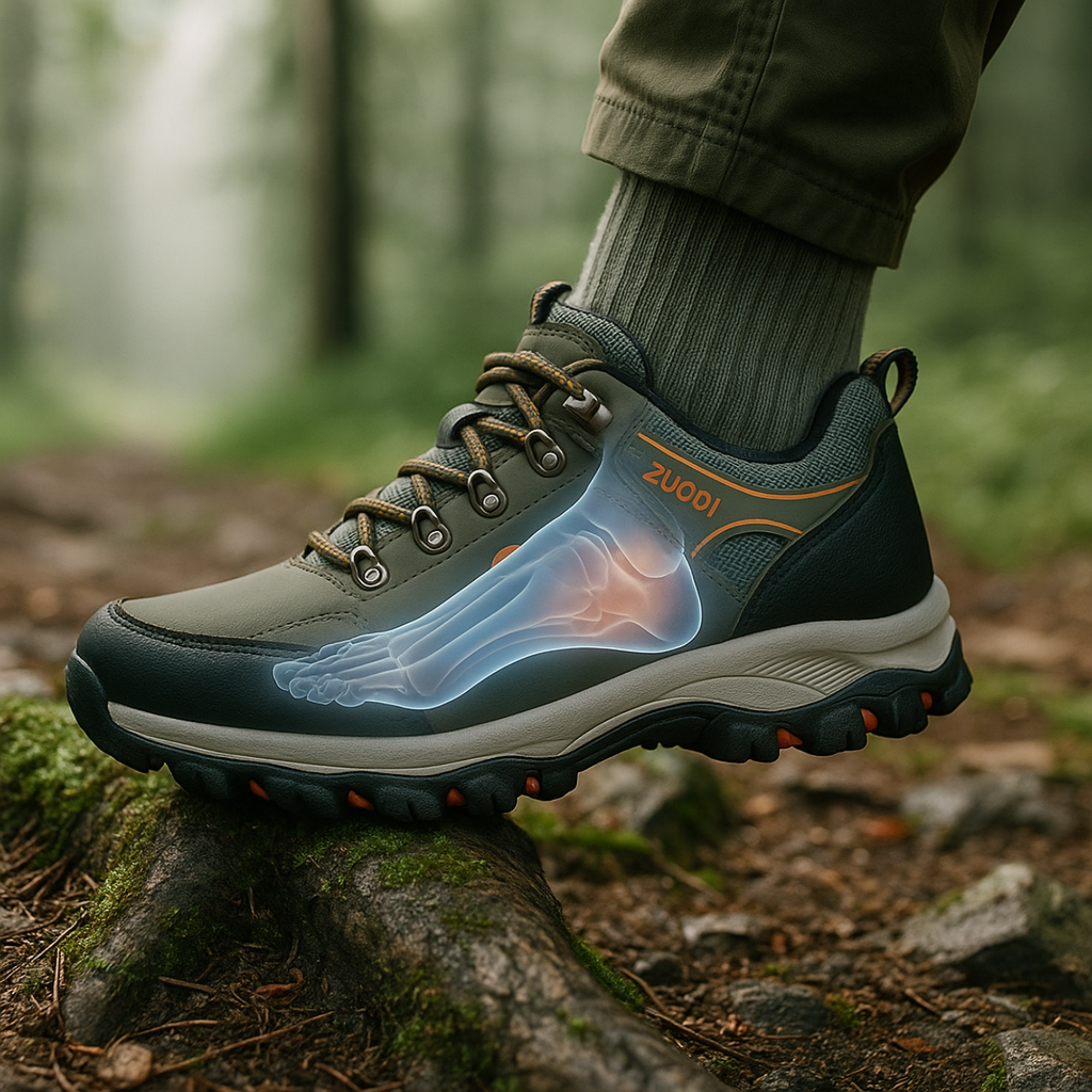 Feuchtes Laub, rutschige Steine oder unebener Waldboden – genau da fühlt sich der OrthoMove zuhause. Dank seiner stabilen Sohle, wasserabweisenden Oberfläche und bequemen Passform meisterst du jedes Gelände mit einem sicheren Gefühl und entspannten Schritten.