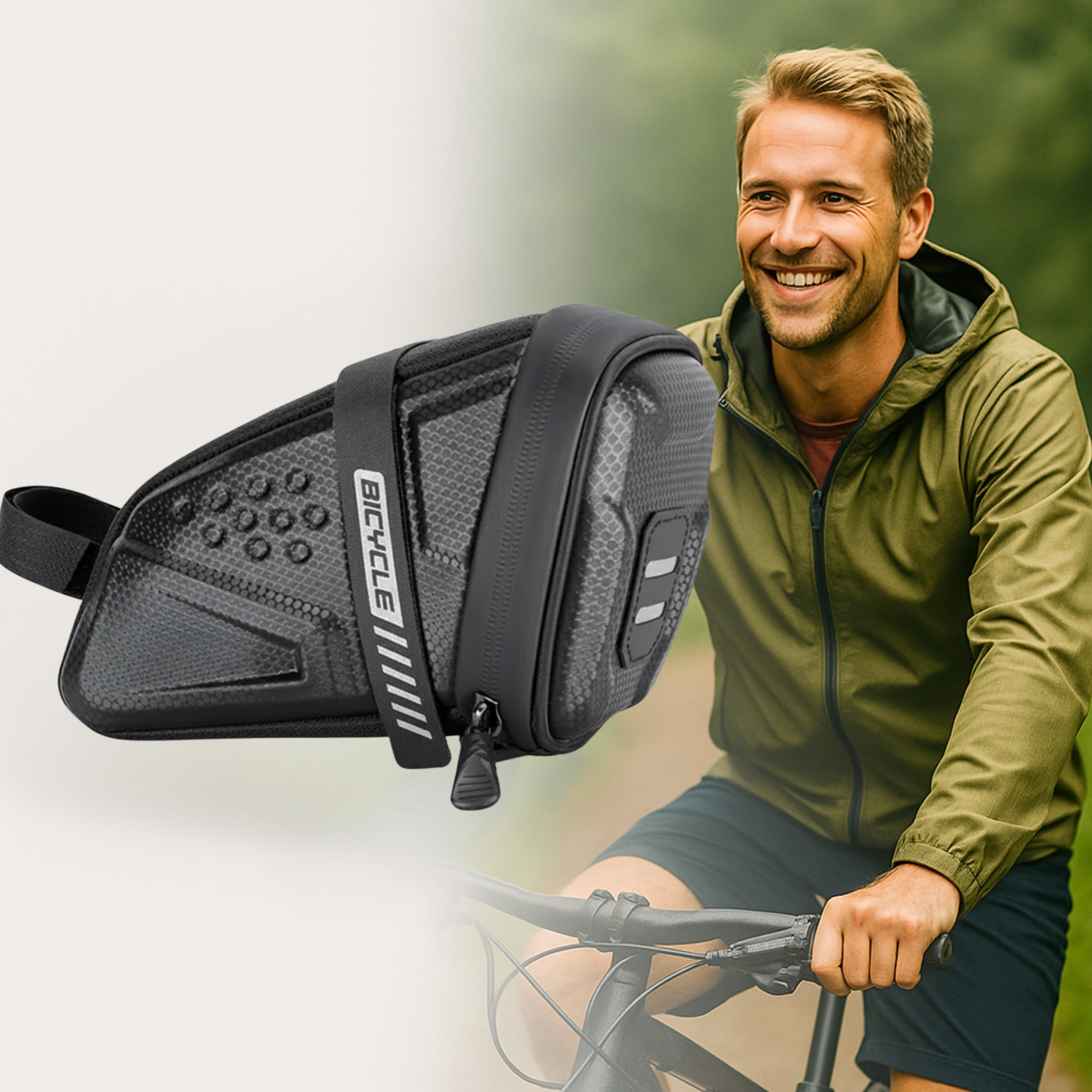 Die stoßfeste EVA-Hartschale schützt dein Equipment selbst auf ruppigen Trails. Der wasserdichte Reißverschluss hält deine Sachen trocken, während reflektierende Elemente dich bei Nacht sichtbar machen. Mit den verstellbaren Klettverschlüssen passt PackPro auf jedes Rad – und sitzt dabei absolut sicher.