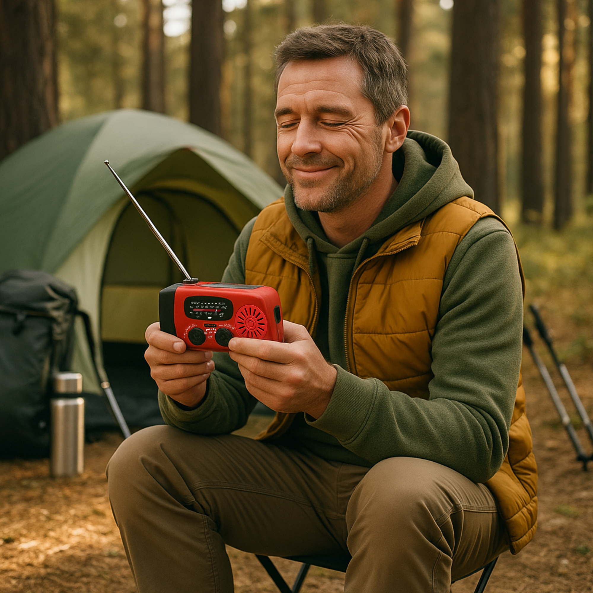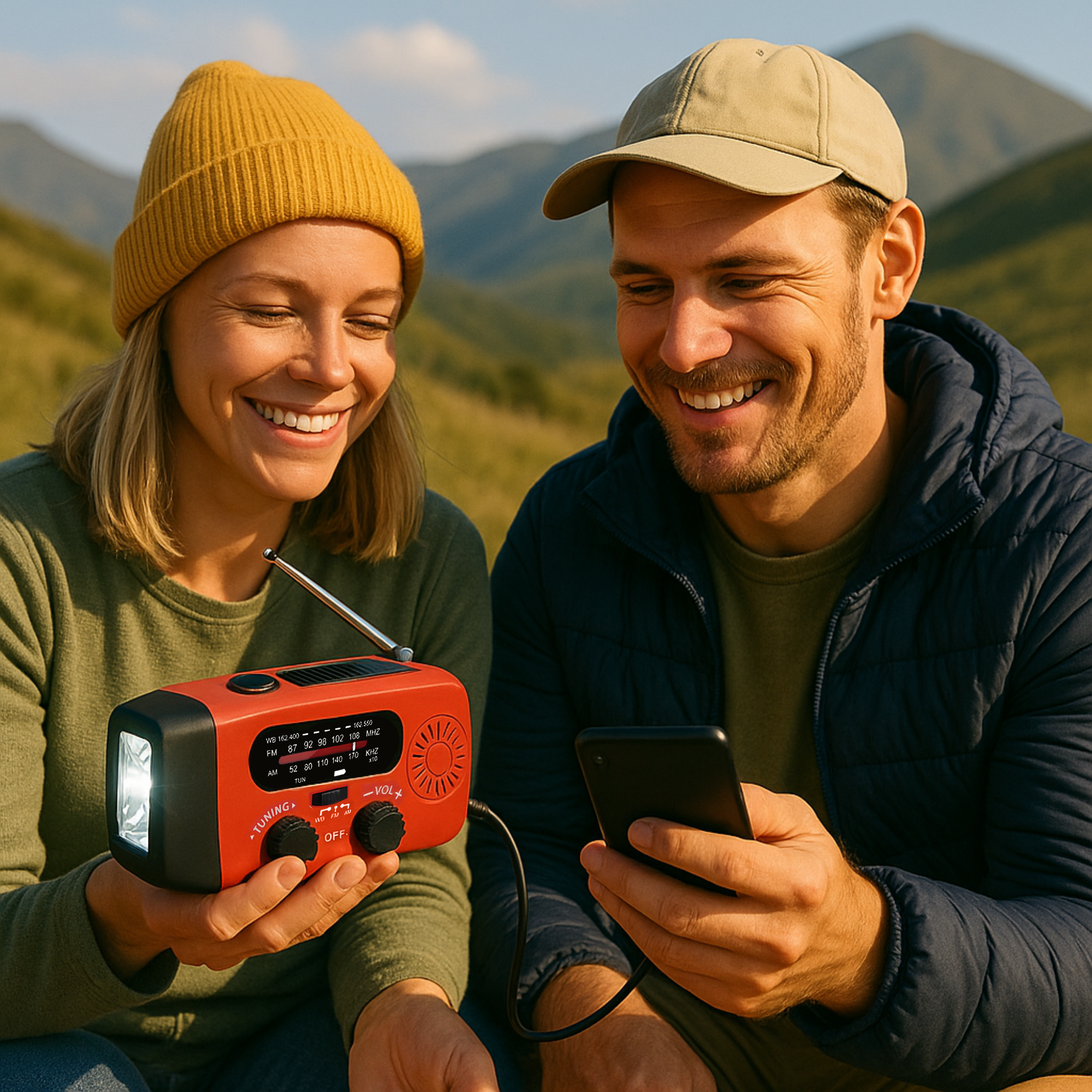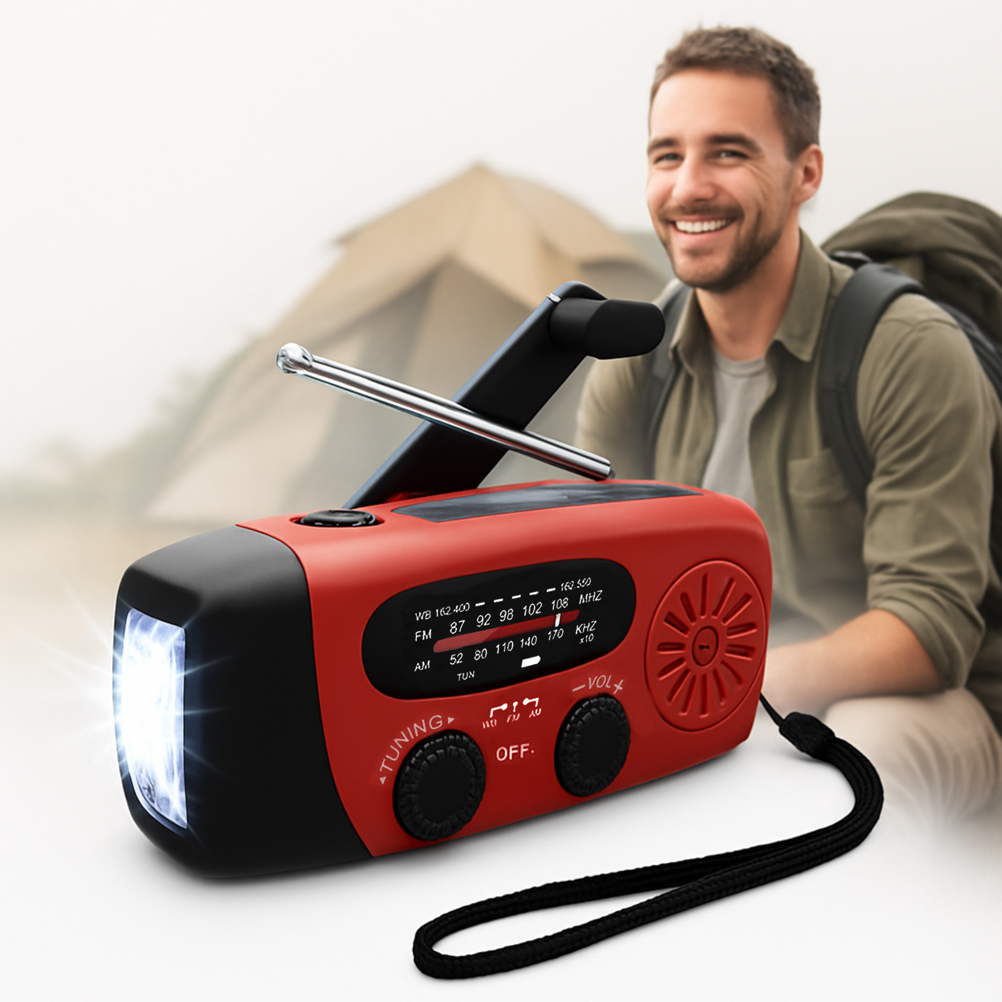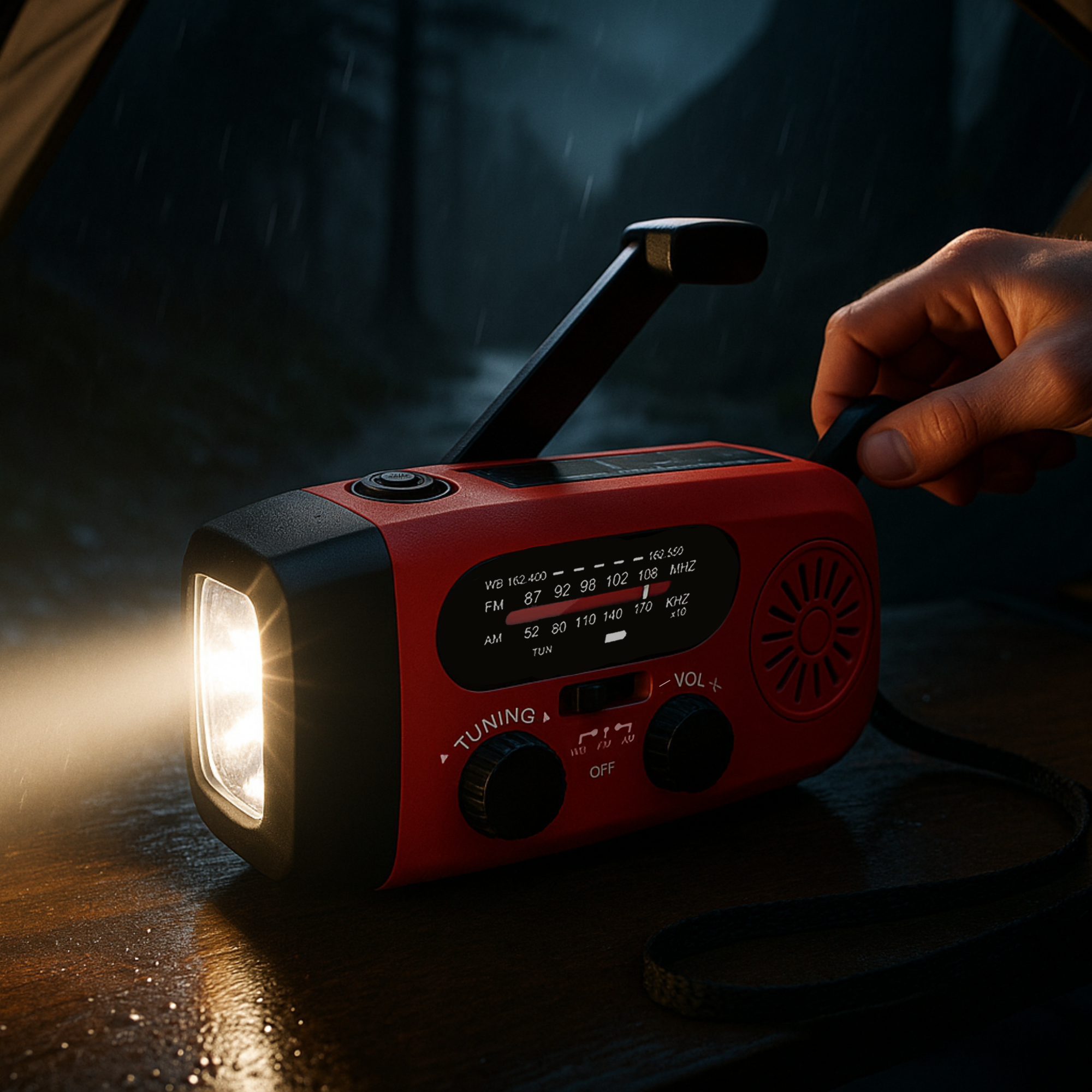 Mit AM/FM/WB-Radio bleibst du selbst in der Wildnis auf dem Laufenden.