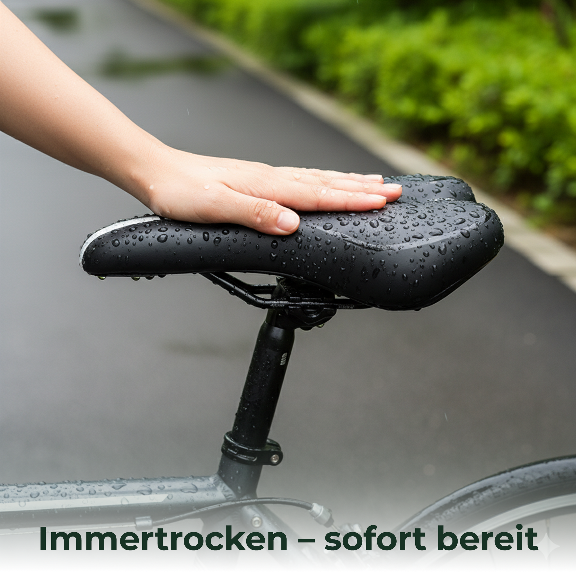 Du hast dein Rad draußen stehen lassen, es regnet – und schon ist der Sitz klatschnass. Dank wasserfestem Material und schnelltrocknender Oberfläche ist SaddleEase jederzeit einsatzbereit. So musst du dich nie mehr vor der Fahrt ärgern.