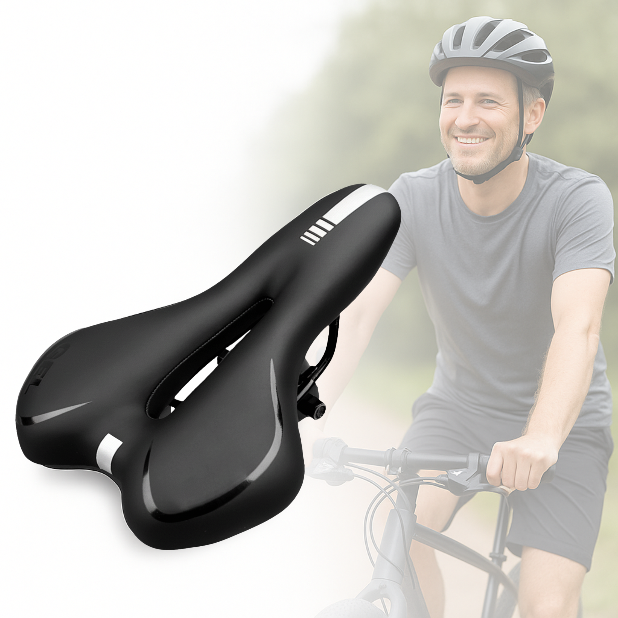 Viele Radfahrer kennen das Problem: Schon nach kurzer Zeit schmerzen Rücken oder Gesäß. SaddleEase mit seiner CloudComfort Gel-Polsterung entlastet deinen Körper und sorgt für ein völlig neues Fahrgefühl. Endlich kannst du Touren genießen – ohne Schmerzen.