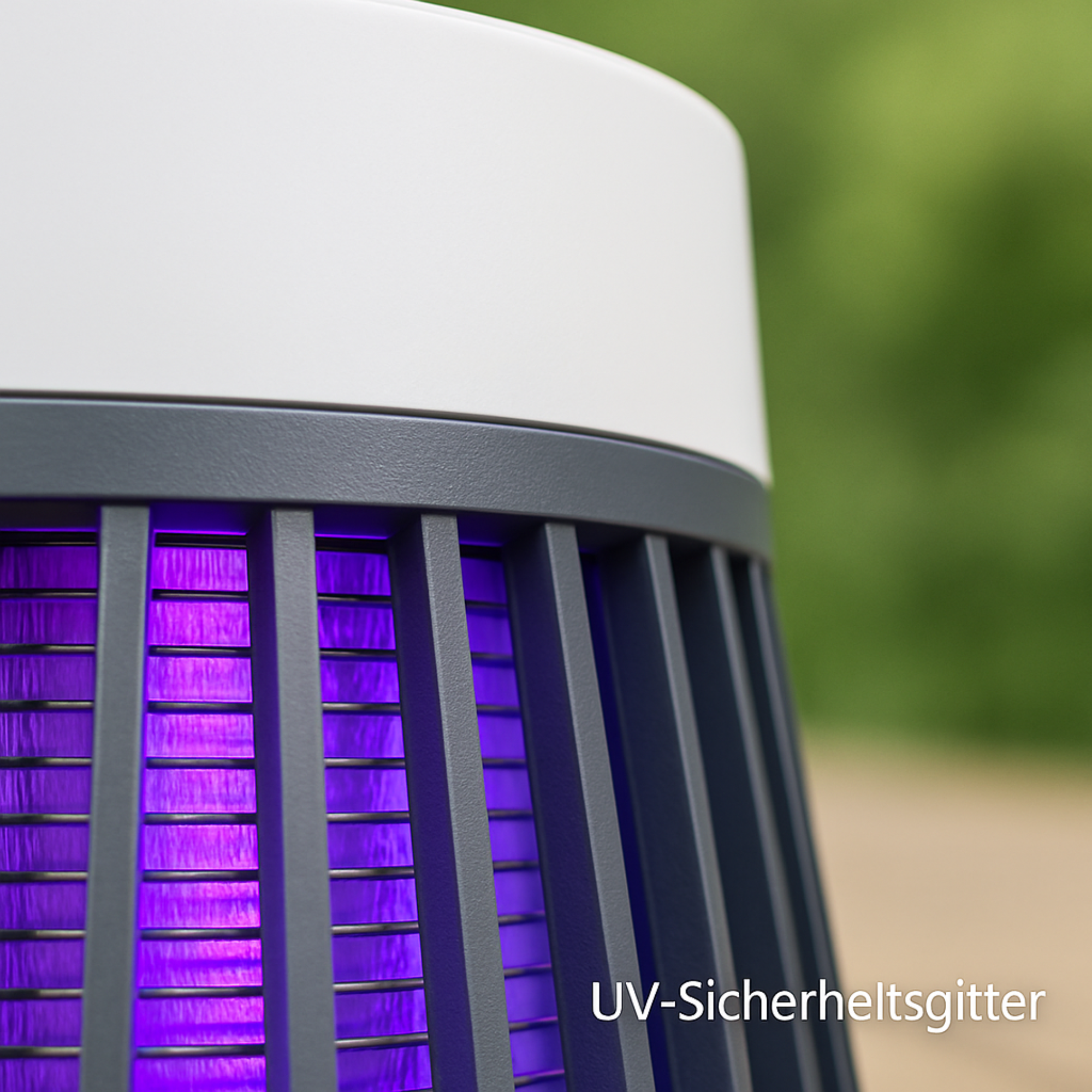 UV-Licht zieht Insekten an – ein elektrischer Impuls beseitigt sie leise und effizient, ohne Chemie.