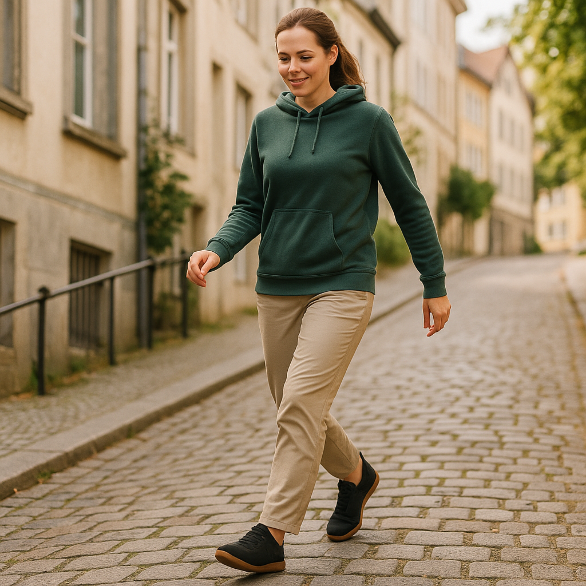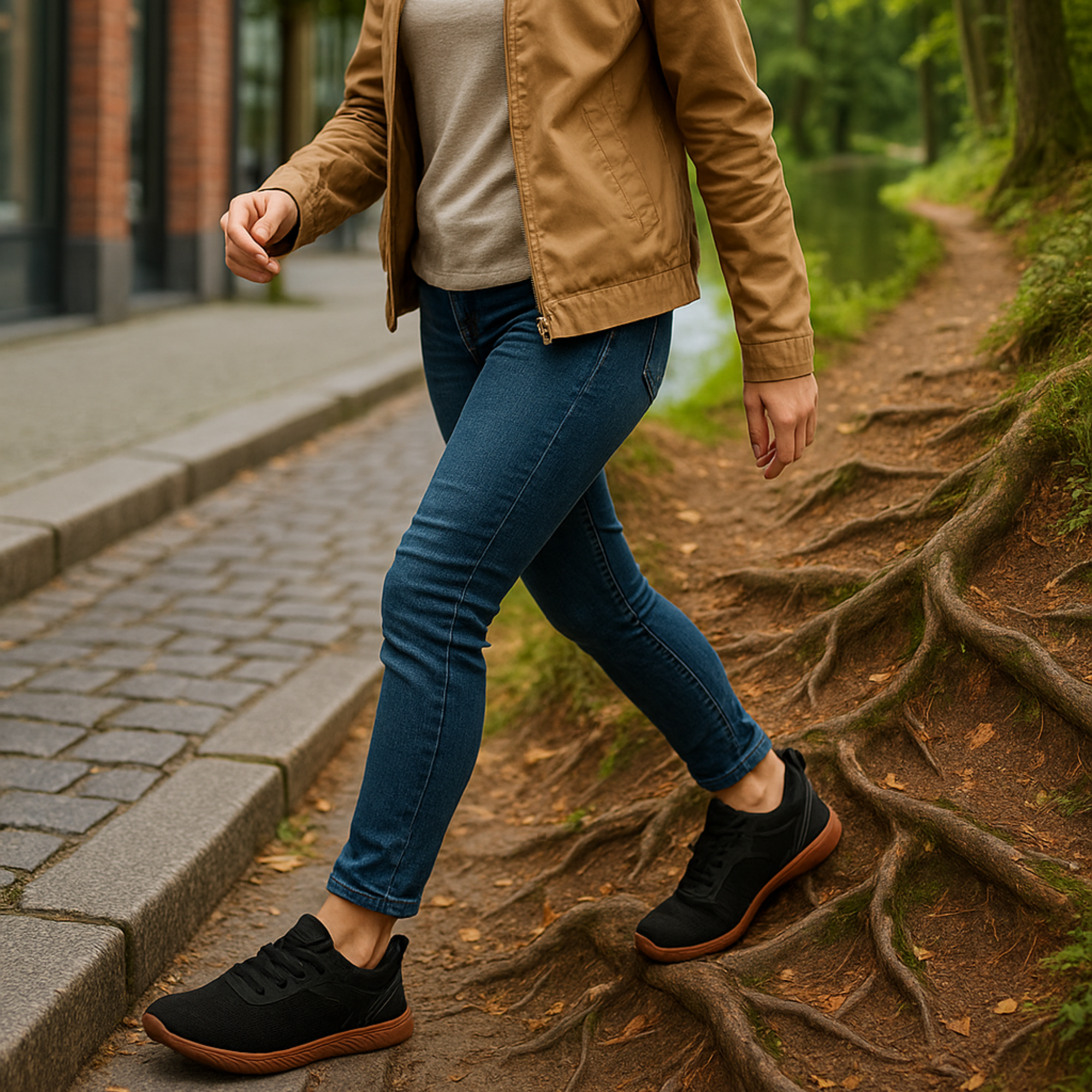 Ob du durch die Stadt schlenderst, am Fluss entlang läufst oder spontan in den Wald abbiegst – mit dem SneakFlex fühlt sich jeder Schritt angenehm leicht an. Unebene Wege, Bordsteine oder Wurzeln? Die flexible Sohle passt sich an, während du leicht und stabil unterwegs bleibst. Kein Umziehen nötig – ein Schuh für alles.