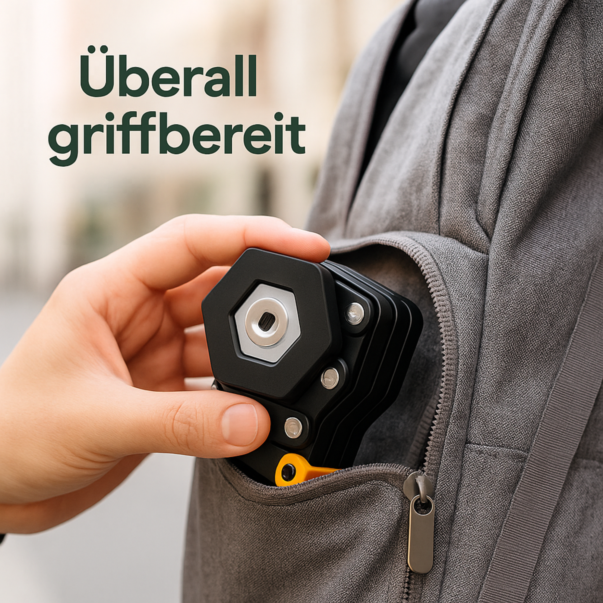 Passt in jede Tasche oder direkt an den Rahmen – ohne unnötig sperrig zu wirken.