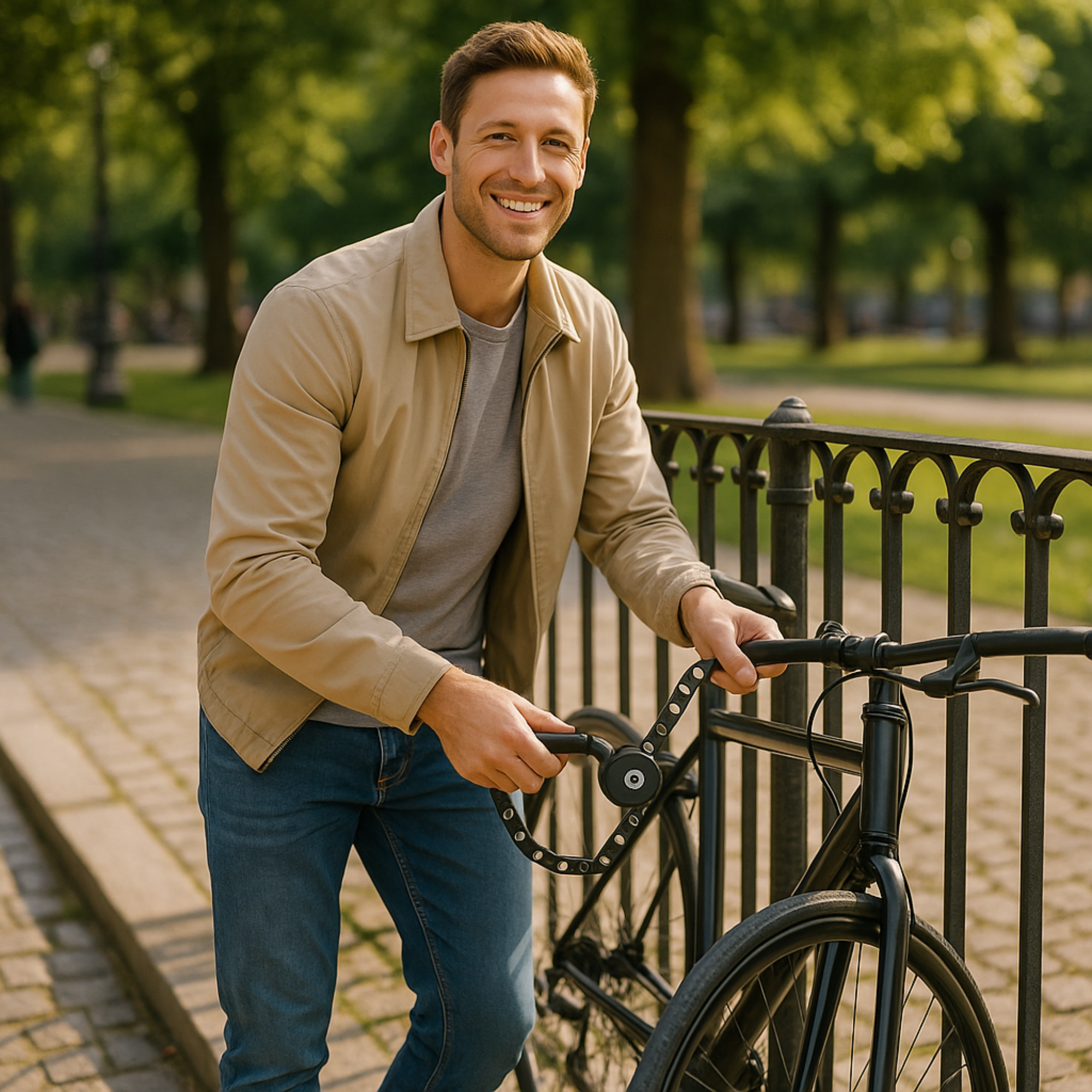 Ob in der Stadt, am Bahnhof oder vor dem Café – das mulmige Gefühl, sein Rad unbeaufsichtigt zu lassen, kennt jeder. SteelShield sorgt mit seinem hochsicheren Zylinder und robusten Stahlgliedern dafür, dass dein Fahrrad zuverlässig geschützt ist. So kannst du dich endlich entspannen und deine Zeit genießen.