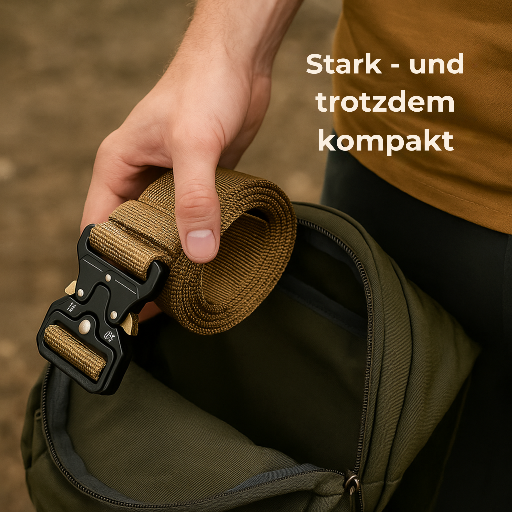 Dein Einsatzgebiet wechselt ständig – vom Alltag in der Stadt bis zum Survival-Trip im Wald. Der TerraFort Gürtel macht alles mit. Wetter, Kleidungsschichten oder Ausrüstung? Kein Problem – er passt sich flexibel an und bleibt zuverlässig.