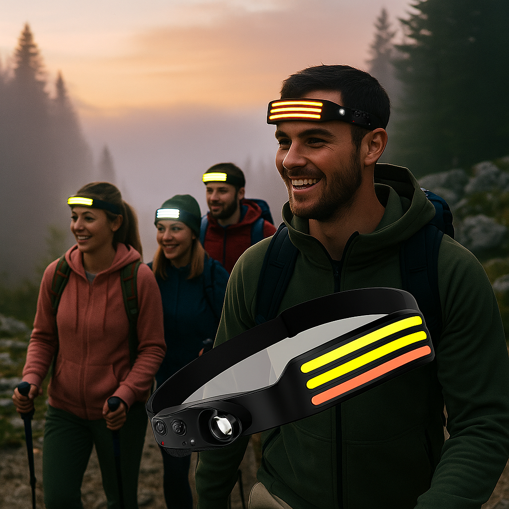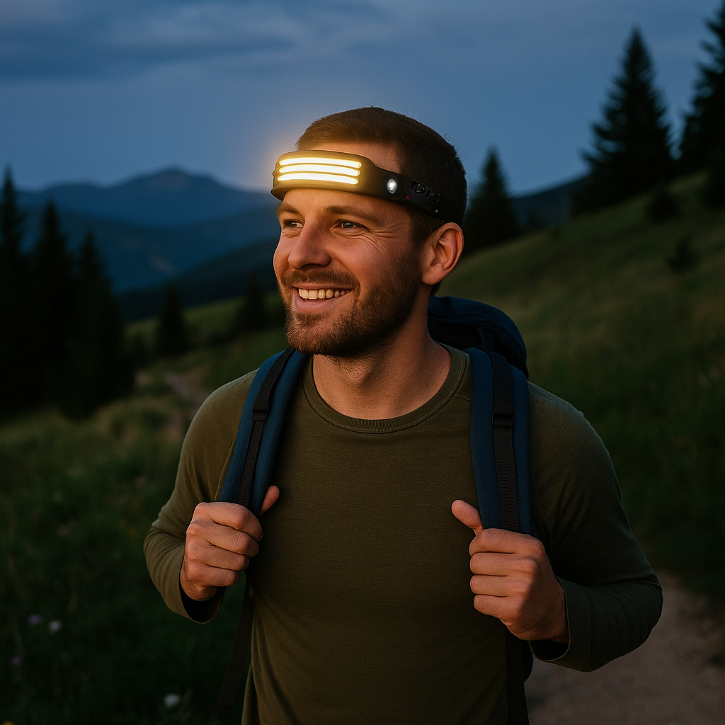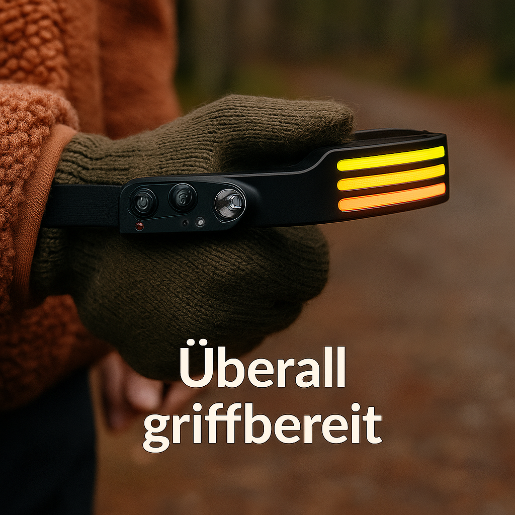 TrailGuard – Stirnlampe Sensor gesteuert | 230° Weitwinkel ultraleicht wasserdicht | Für Joggen Camping Outdoor
