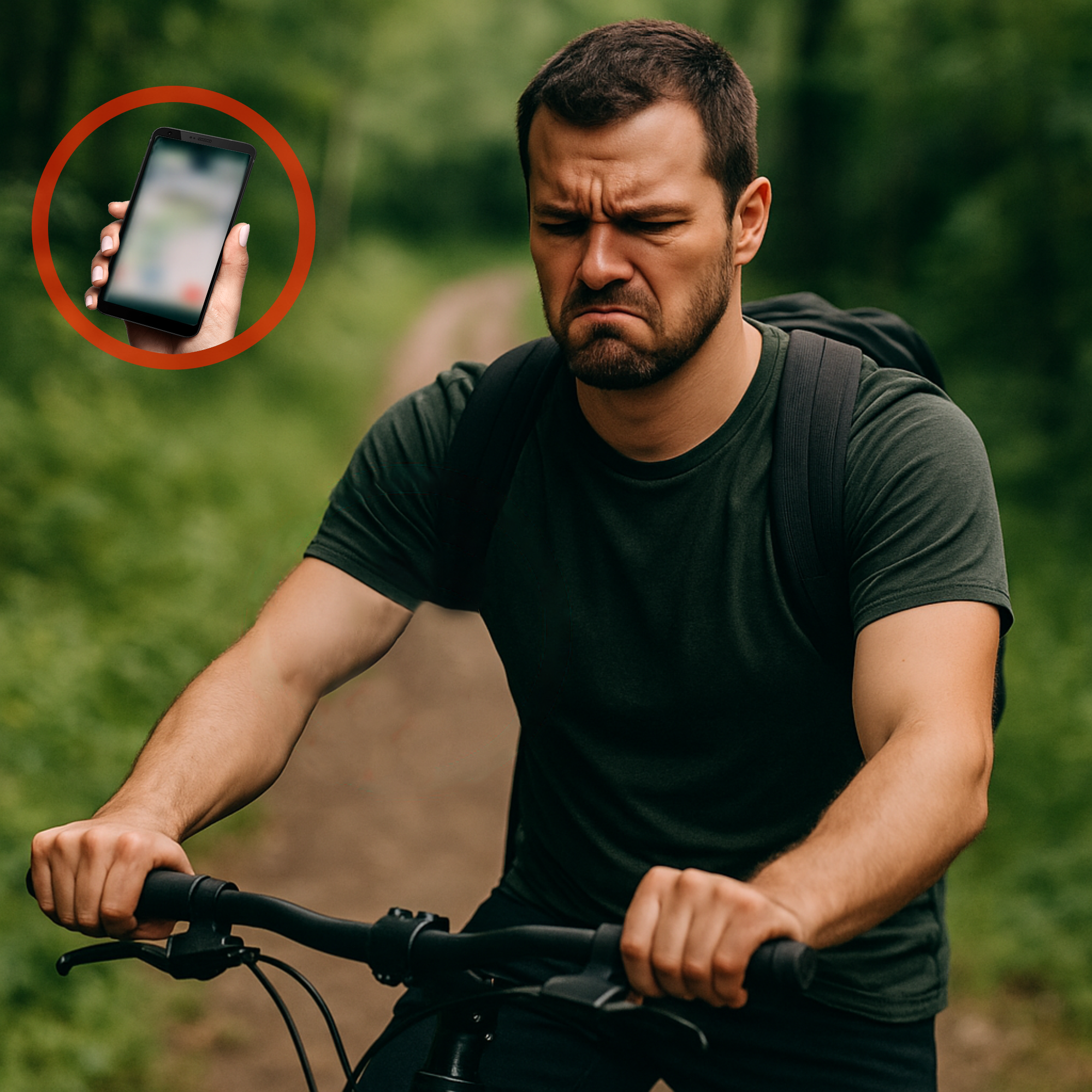 Ob auf unebenen Waldwegen oder bei plötzlichen Regenschauern – mit VeloTrail hast du deine Navigation jederzeit im Blick und deine Wertsachen sicher verstaut. Kein Verrutschen, kein Durchnässen. Nur Fahrspaß pur.