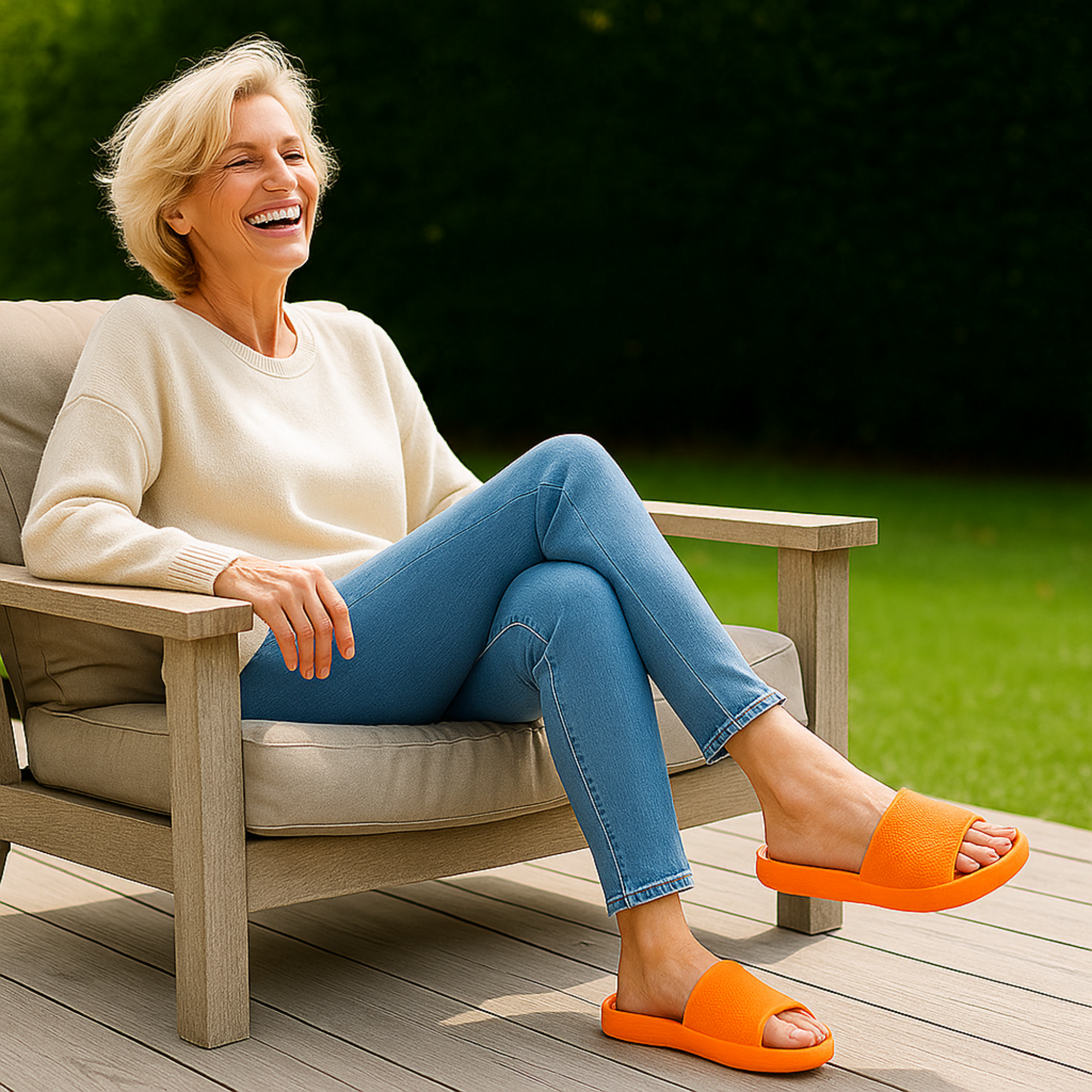 Ob auf Fliesen, Laminat oder Stein – herkömmliche Hausschuhe verursachen oft Druckstellen oder Unsicherheit. WohlTritt federt jeden Schritt ab und passt sich deiner Fußform ideal an. Du wirst spüren, wie leicht sich jeder Schritt anfühlen kann – den ganzen Tag über.